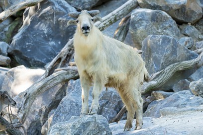 In der neuen Anlage für asiatische Gebirgstiere sind erstmals in der Geschichte des Tiergartens Goldtakine zu sehen - als Mitbewohner der Himalaya-Tahre. Mit ihrer kräftigen Statur, dem goldfarbenen Fell und ihrer Trittsicherheit beeindrucken sie auf Anhieb. In ihrer Heimat, den Gebirgswäldern der zentralchinesischen Provinz Shaanxi, werden sie als gefährdet eingestuft. Auch in zoologischen Gärten sind sie selten anzutreffen.
