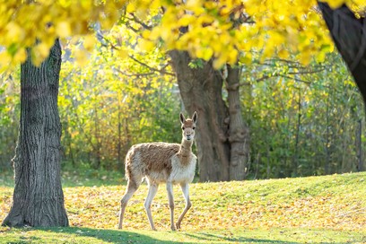 Unsere Vikunjas lassen sich die schöne Herbstsonne auf ihr Fell scheinen. Vikunjas sind die kleinste lebende Kamelart. Ihr Fell ist besonders weich und so dicht, dass es wie eine Isolierschicht gegen die Kälte wirkt.