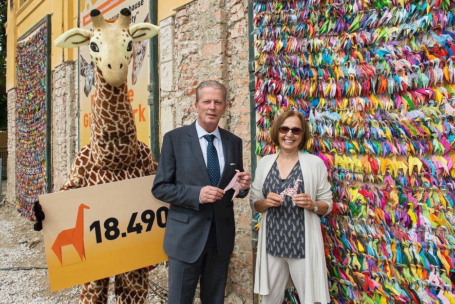Mit einer Höhe von bis zu fünfeinhalb Metern sind Giraffen die höchsten Tiere und Rekordhalter in der Tierwelt. Auch der Tiergarten Schönbrunn wollte passend zum Spatenstich des neuen Giraffenparks einen Weltrekord aufstellen. Zwei Monate lang waren alle bastelfreudigen Tiergartenfans aufgerufen, Origami-Giraffen für den Tiergarten zu falten. „Wir wollten den Guinness-Weltrekord der meisten Origami-Giraffen aufstellen. Unser Ziel waren 1.828 Giraffen - passend zu dem Jahr, in dem die erste Giraffe in den Tiergarten gekommen ist. Doch das Ergebnis ist überwältigend“, erklärt Tiergartendirektorin Dagmar Schratter.