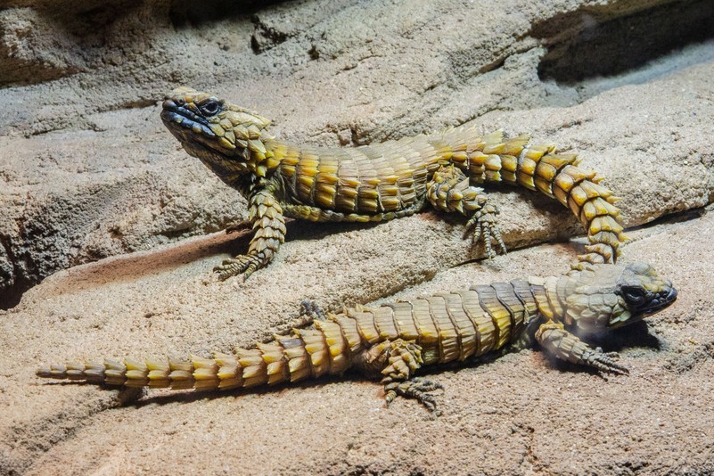 Der Panzergürtelschweif bewohnt felsige Berghänge an der Westküste Südafrikas. Seine komplette Körperoberseite ist mit starken Schuppen versehen. Bei Gefahr beißt er sich in den Schwanz und formt eine Kugel. In dieser Verteidigungshaltung ist er vor Schakalen und Raubvögeln sicher, denn die weiche Bauchseite ist geschützt.