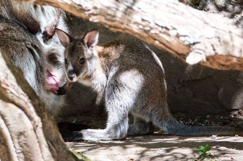 Ihre Jungtiere, die nach der kurzen Tragzeit noch sehr unterentwickelt geboren werden, wandern entlang einer feuchten Schleimspur in den Beutel der Mutter. Diesen verlassen sie erst nach einem halben Jahr und werden im Alter von 12 bis 17 Monaten entwöhnt.