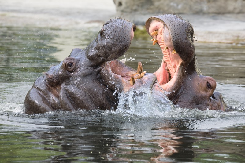Flusspferde verbringen viele Stunden zur Abkühlung und Ruhe in stehenden oder langsam fließenden Gewässern Afrikas. Sie sind in der Lage, Nase und Ohren zu verschließen, sodass beim Untertauchen kein Wasser eindringen kann. Flusspferde tauchen im Durchschnitt etwa fünf Minuten lang.
