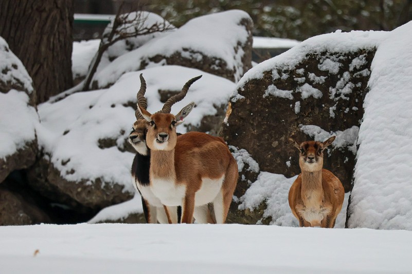 Hirschziegenantilopen waren einst das meist gejagte Wildtier in Indien, wodurch sie fast ausgerottet wurden. Durch erfolgreiche Schutzmaßnahmen wuchs die Population wieder auf ca. 50.000 Tiere, die überwiegend in Reservaten leben. Sie gelten aber weiterhin als gefährdet.