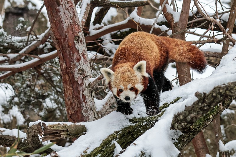 Der Rote Panda, auch Kleiner Panda genannt, zählt zu den Katzenbären und steht mit dem Großen Panda nicht in unmittelbarer Verwandtschaft. Die geschickten Kletterer bewohnen Gebirgs- und dichte Bambuswälder im östlichen Himalaya und im Südwesten Chinas. Allerdings leben hier nur noch rund 10.000 Tiere.