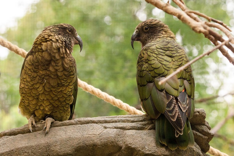 Keas sind in jeder Hinsicht ungewöhnliche Papageien: Sie sind Gebirgsvögel, lieben Kälte und Schnee, graben nach Wurzeln und Knollen, halten sich bevorzugt am Boden auf und stellen mitunter Säugetieren nach. Sie sind die Nutznießer der touristischen Erschließung der Neuseeländischen Gebirge, denn sie durchstöbern Abfälle oder plündern so manchen Picknickkorb. Fast könnte man sie als "neuseeländische Alpendohlen" bezeichnen.